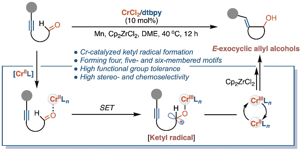 Mild ketyl radical generation and coupling with alkynes enabled by Cr catalysis: stereoselective access to E-exocyclic allyl alcohols