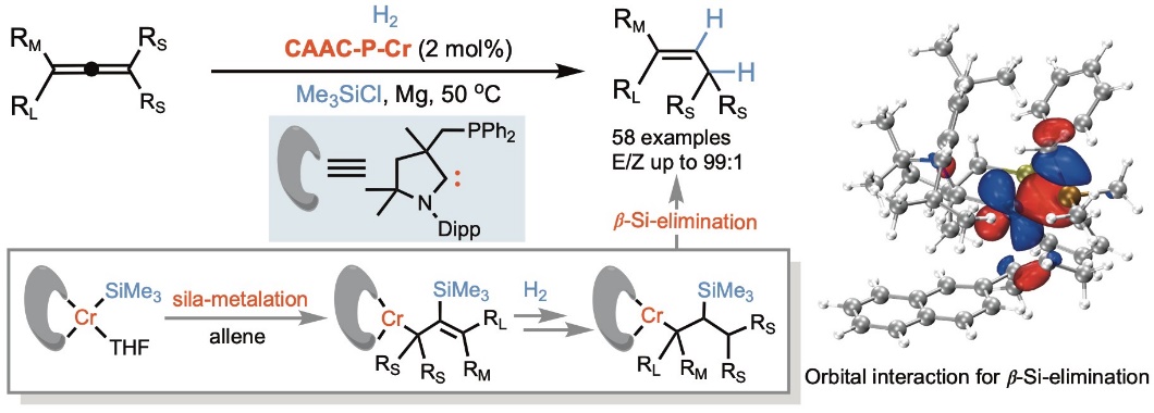 Chromium-catalyzed stereodivergent E- and Z-selective alkyne hydrogenation controlled by cyclic (alkyl)(amino)carbene ligands