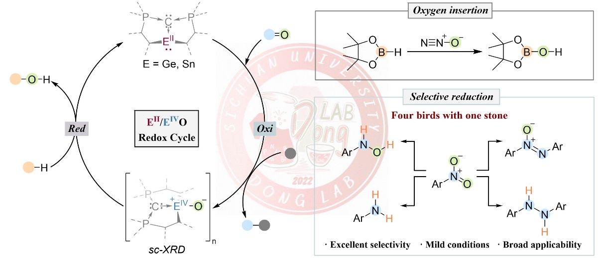 8. Zhuchunguang Liu†, Xiaojian Li†, Zhijun Wang†, Huan Mu, Bo Xiao, Weichao Xue, Jiliang Zhou, and Zhaowen Dong*, EII/EIVO (E = Ge, Sn) Catalyzed Nitrous Oxide Activation and Chemodivergent Reduction of Nitroarenes, Angew. Chem. Int. Ed. 2025, e202515638.
