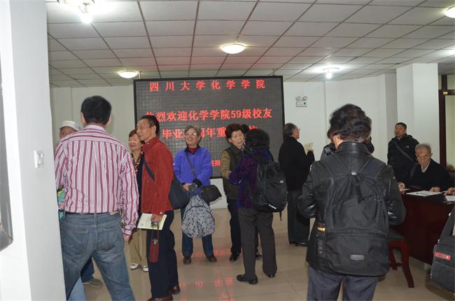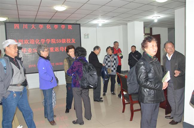 2014年10月15日上午,化学学院59级本科校友毕业50周年重返母校,在化学馆321会议室聚会。化学学院党委书记王智猛老师、党委副书记谢均老师和校友联络及就业科科长杜晓燕老师参加了本次聚会。