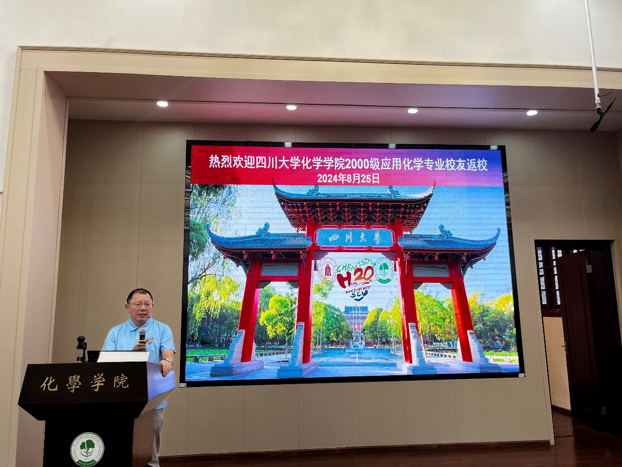 8月25日,大家一早齐聚当年的上课教室——化学馆321阶梯教室。首先,化学学院党委副书记肖波老师代表学院致辞,细数20年来学院在学科建设、人才培养、科研创新等方面取得的辉煌成就,一个个振奋的进展和消息,让飘泊在外的学子们内心澎湃、热血沸腾。