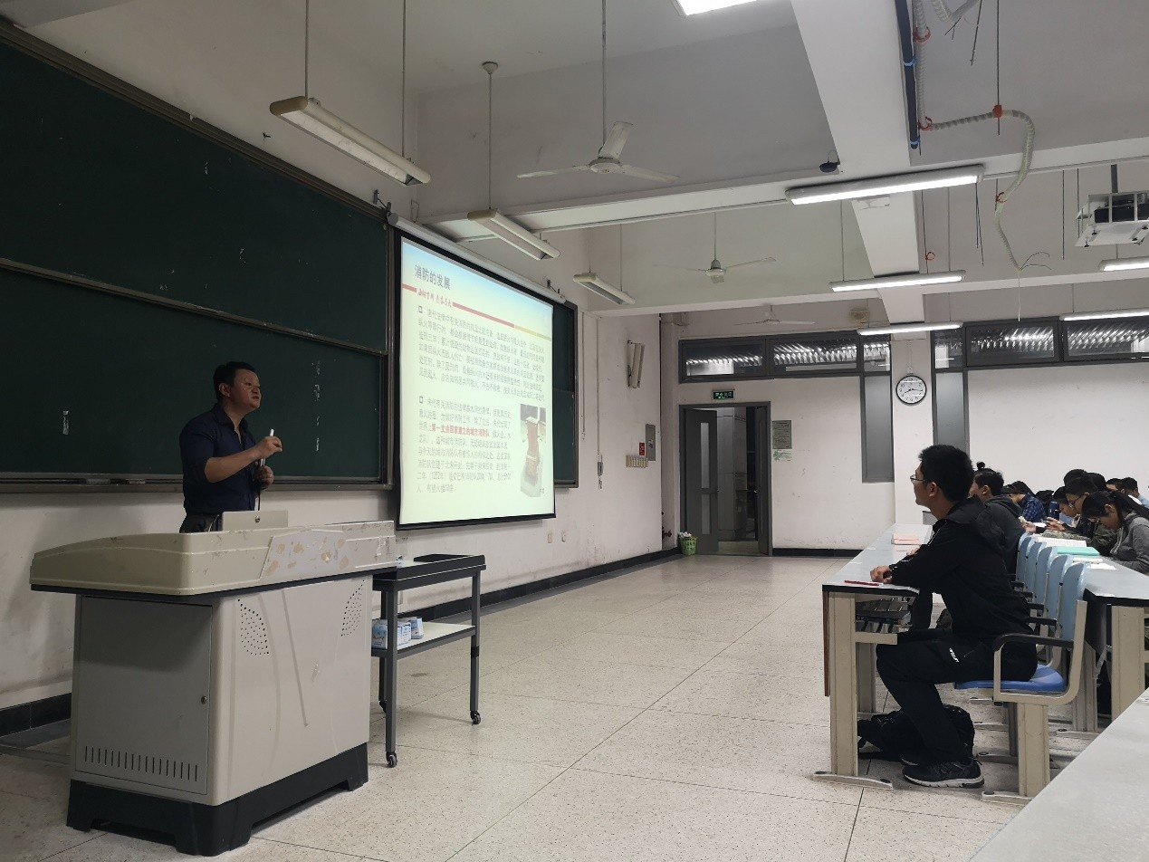 陈老师首先介绍了燃烧的原理,展示了燃烧循环图,由此分别从可燃物,空气,热量三个方面,提出防火的方法。从生活出发,以史实为鉴,用实例为证,深入浅出,透彻讲述化学在防火方面的历史发展。从古到今,防火法规与技术的发展,体现出的是社会制度的不断完善,科学技术的不断进步。