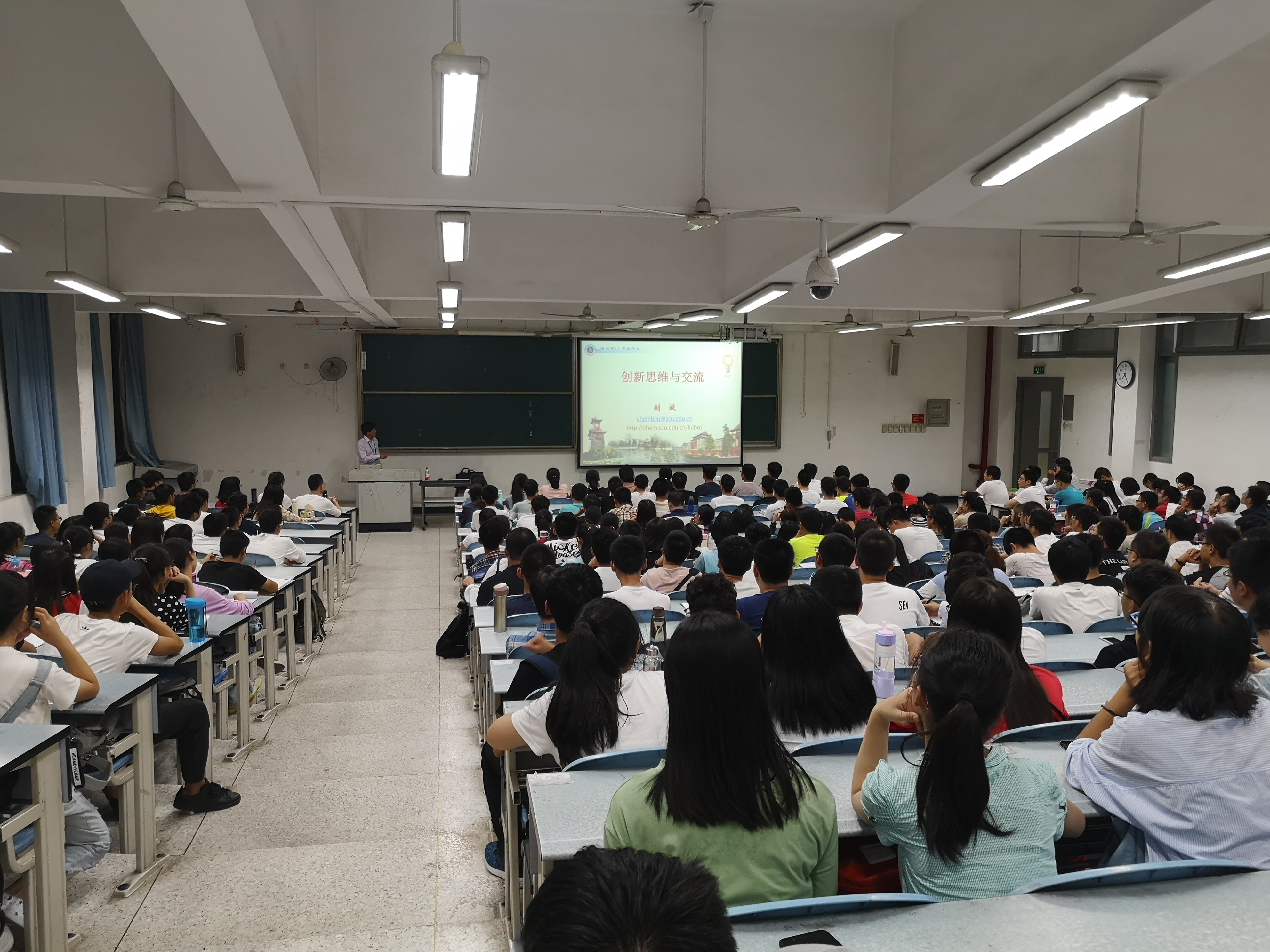 2018年9月18日晚,在江安校区综合教学楼C座107室,刘波副院长为化学学院2018级新生带来了“创新思维与交流”系列讲座第一讲。