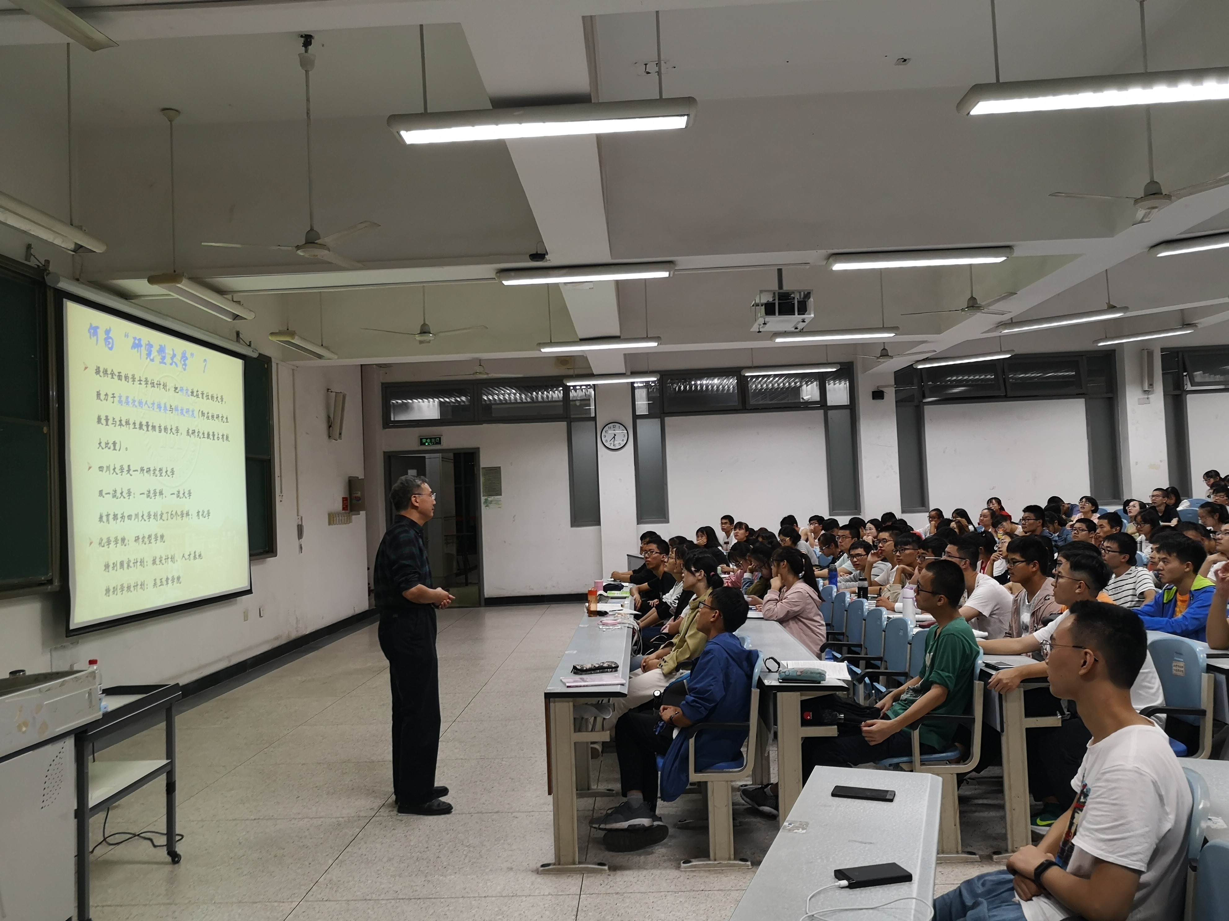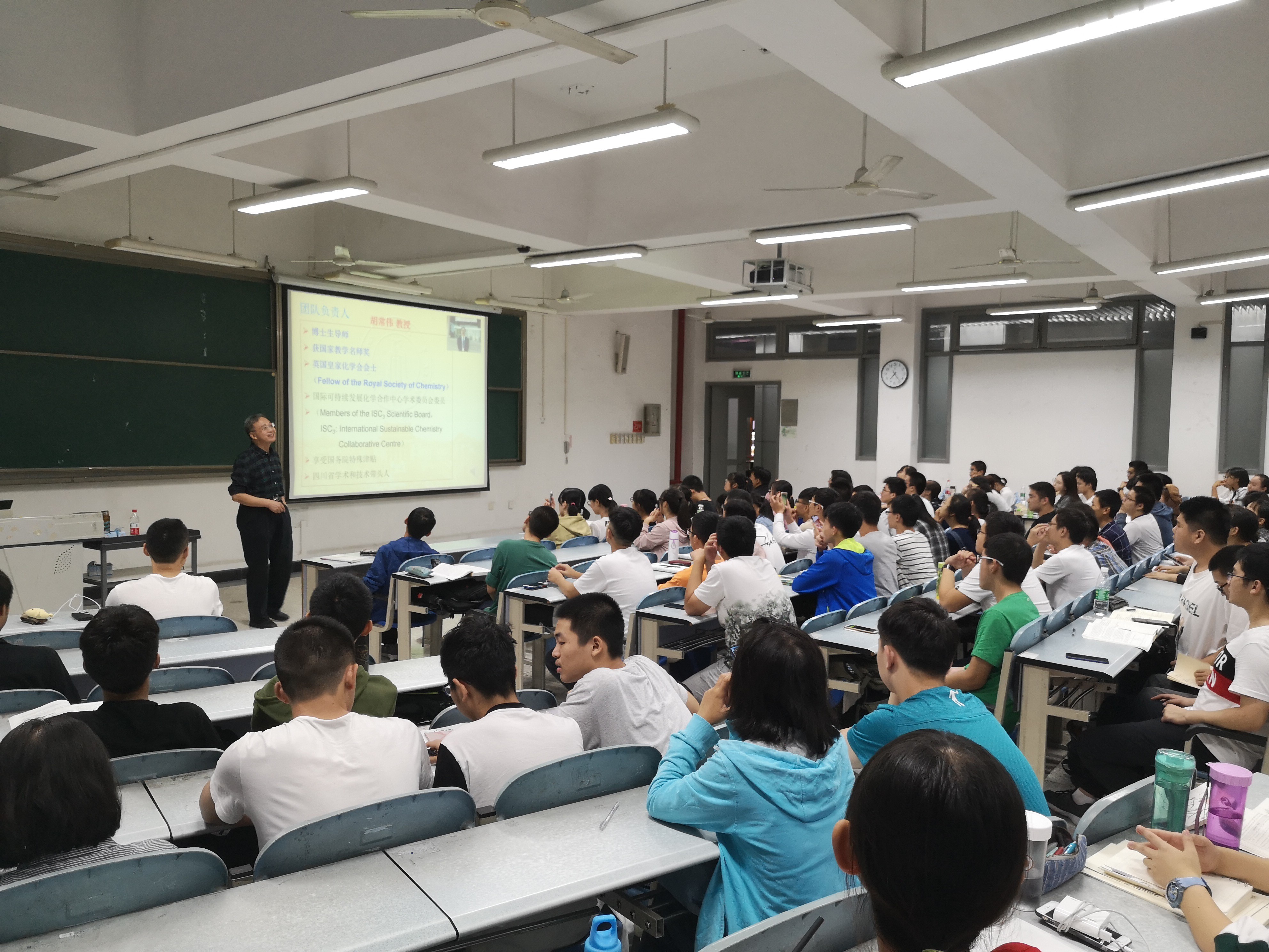 2018年9月25日晚,在江安校区综合教学楼C座107室,胡常伟教授为化学学院2018级新生带了“创新思维与交流”系列讲座的第二讲。