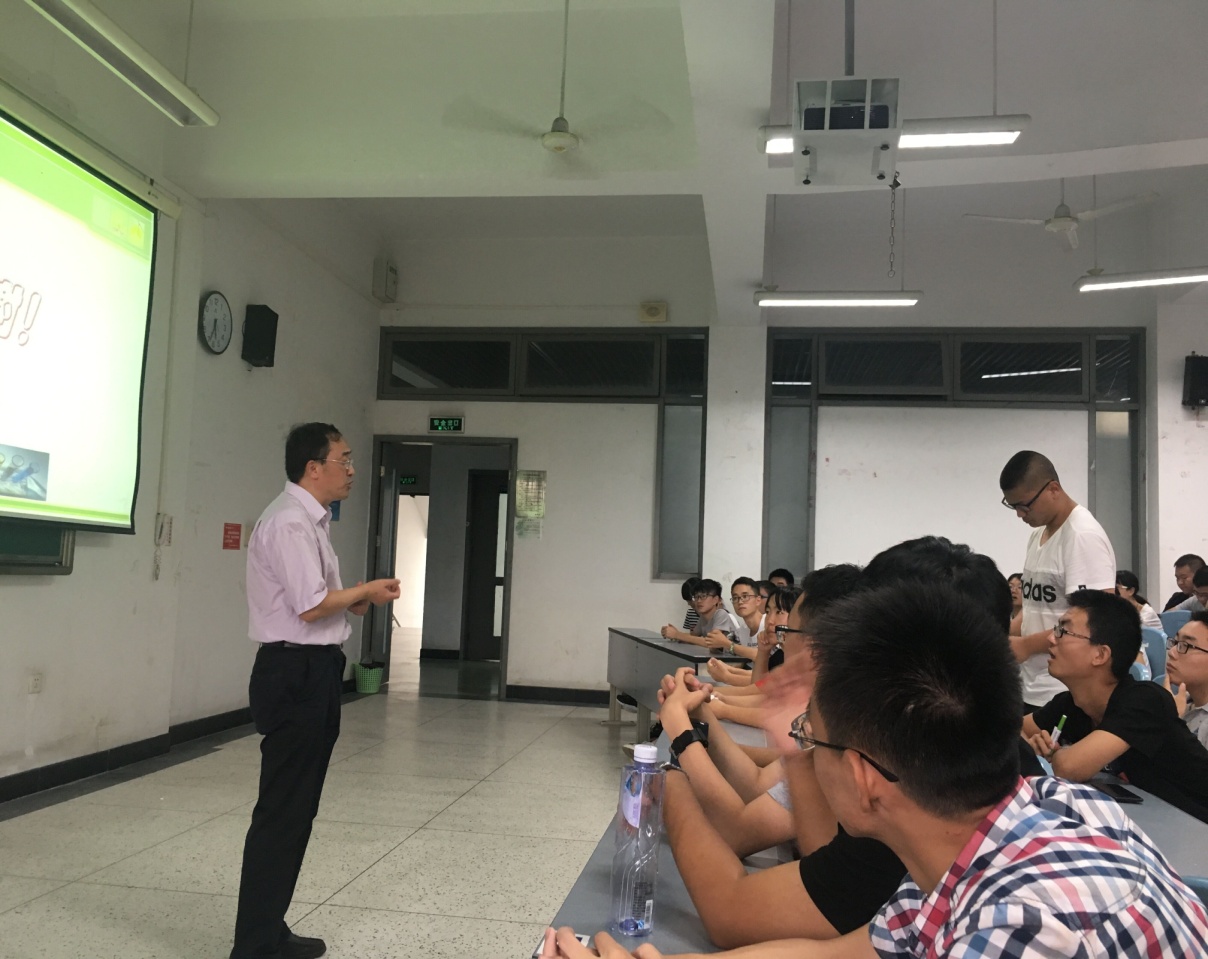 冯小明老师首先从“化学家在做些什么”着手,指出化学是社会发展的重要推动力,之后分别从化学与实用、生物健康、计算机等方面为同学们讲解化学在生产生活中的重要作用,体现了化学在其中扮演着不可或缺的角色。随后,冯小明老师由社会发展带来的环境污染、资源枯竭等方面的化学解决方法说起,带领同学们畅想了化学美好光明的未来。之后,冯小明老师从手性化合物青蒿素的选择性合成谈起,深入浅出,向同学们介绍自己专攻十余年的研究领域——手性化学。他列举了丰富翔实的案例,展现手性分子中蕴含的奥妙,让同学们深切地感受到化学与手性的魅力。他指出不对称合成是获得手性化合物的重要途径,同时向同学们介绍了自己的团队成员情况、实验室所配备的先进设备以及近些年取得的先进研究成果。之后,冯小明老师向新生们提出“坚定信念,敢于创新,实事求是,强化责任”的要求,希望大家除了努力学习之外,更要学会做人,恪守诚信准则,严格要求自己,最终才会有所收获,有所成就。最后是提问环节,同学们踊跃举手提问,冯小明老师一一进行了解答,为同学们解开心中困惑,同学们从中受益匪浅。