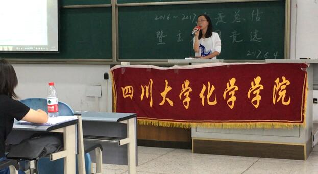 首先,院学生会主席曾泽安发言,提出要建设具有化学学院特色的学院文化建议。之后,由2015级主席团和各部门相继进行工作总结。接下来,学院分团委书记来俏老师对一年来各部门工作给予了充分肯定,指出学生干部应摆正心态,真心热爱学生工作,努力提升自己,处理好学习与工作之间的关系。