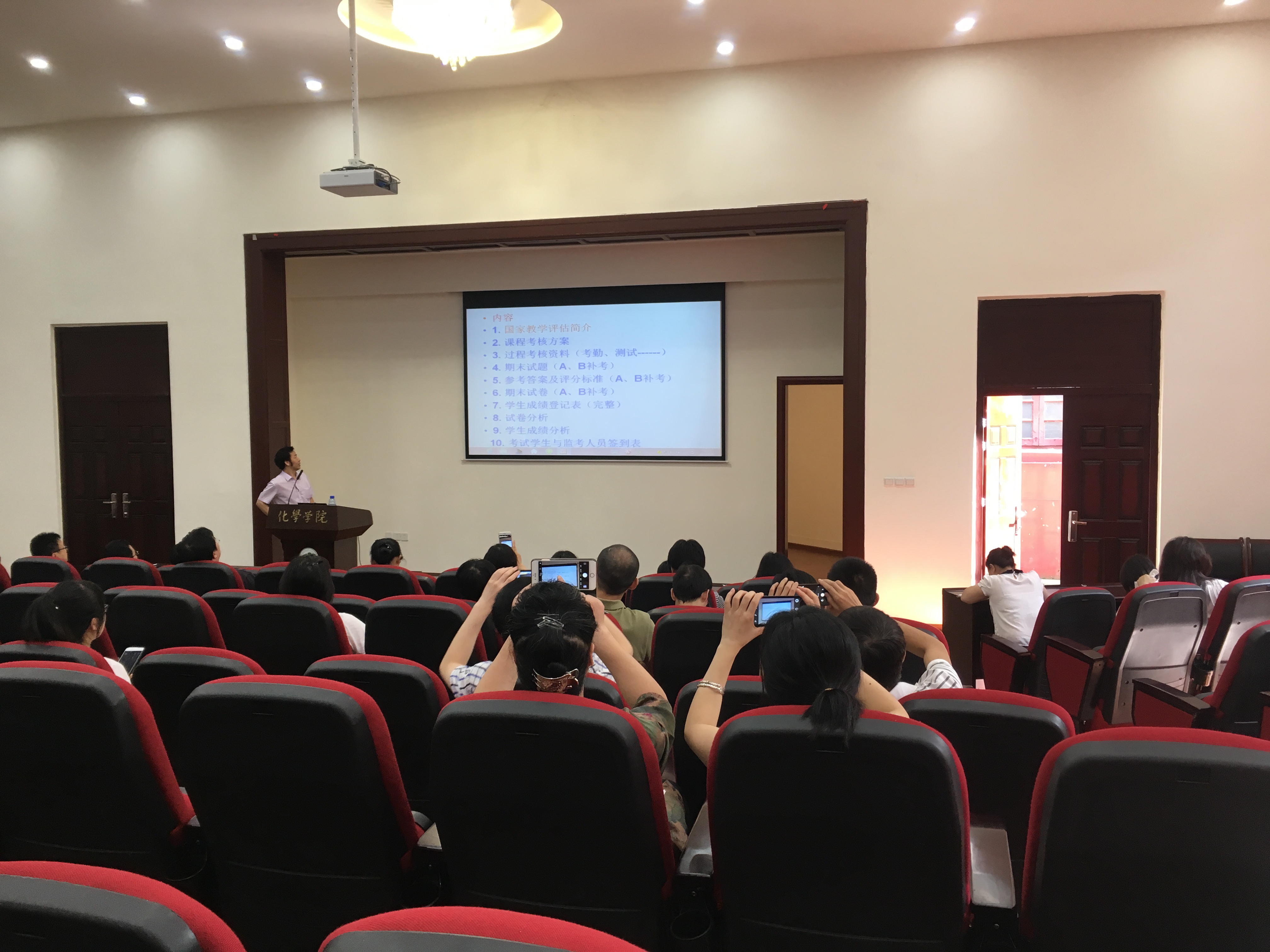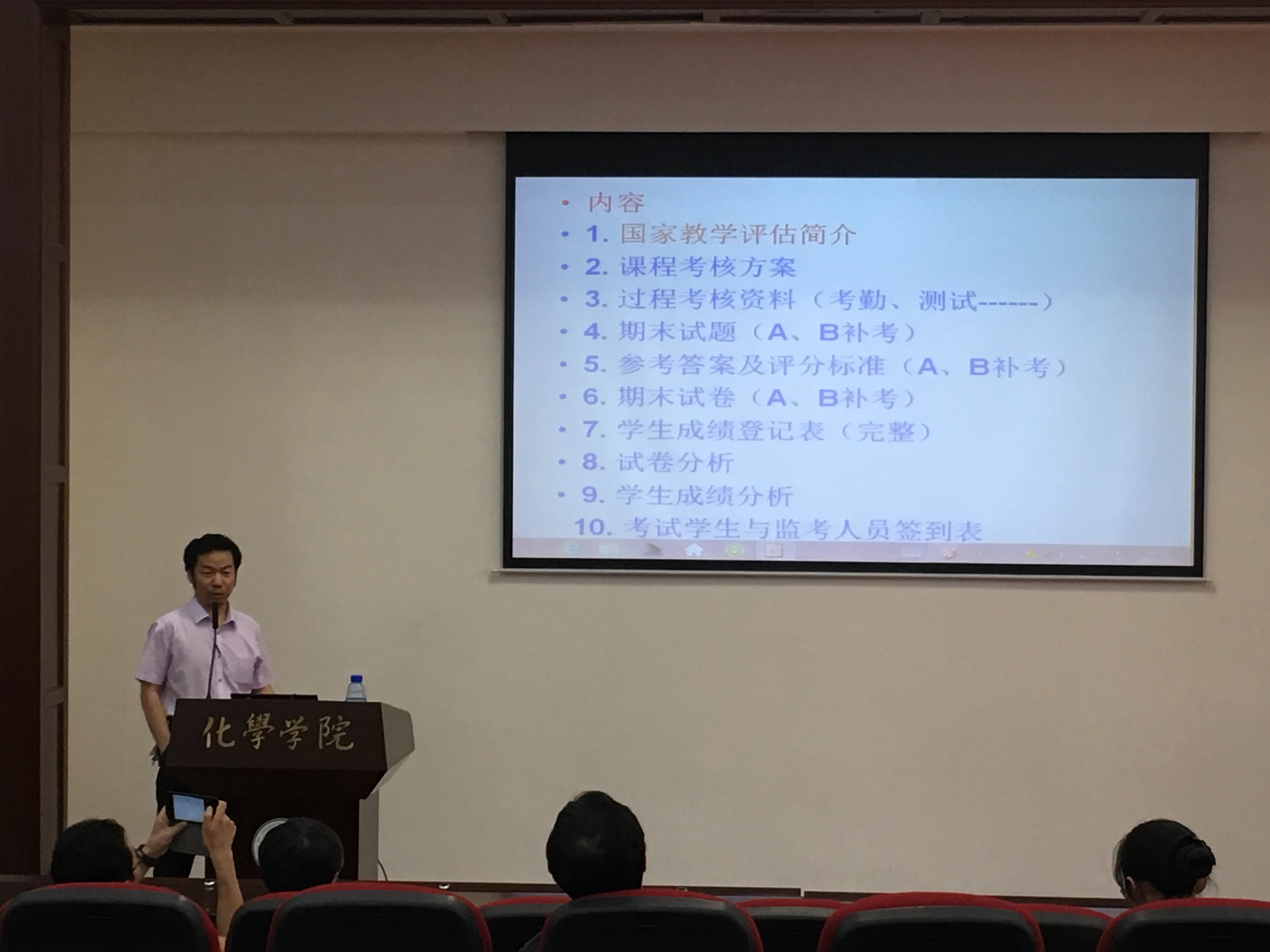 为进一步明确本科课程期末考试管理试卷归档标准,全面提高化学学院期末考试试卷质量管理水平,参照学校教务处相关教学管理制度的要求,2017年7月6日下午,化学学院组织本科教学质量提升交流会, 邀请英国上市公司365教学督导组委员王玉良老师对期末考试试卷评阅和归档进行了讲解,本学期授课老师和研究生助教参加了本次交流会。