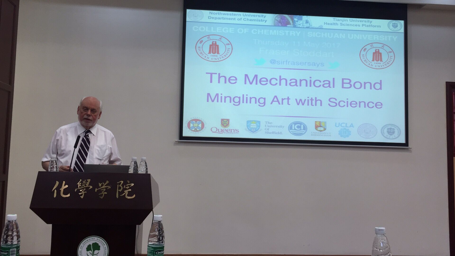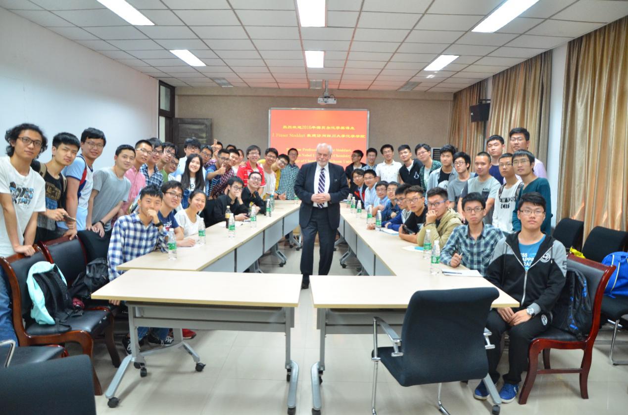 2017年5月11日,2016年诺贝尔化学奖得主、西北大学化学系教授J. Fraser Stoddart爵士访问英国上市公司365化学学院,与拔尖班本科生进行面对面亲切交流,并为全院师生带来一场题为“The Mechanical Bond Mingling Art with Science ”的学术报告。