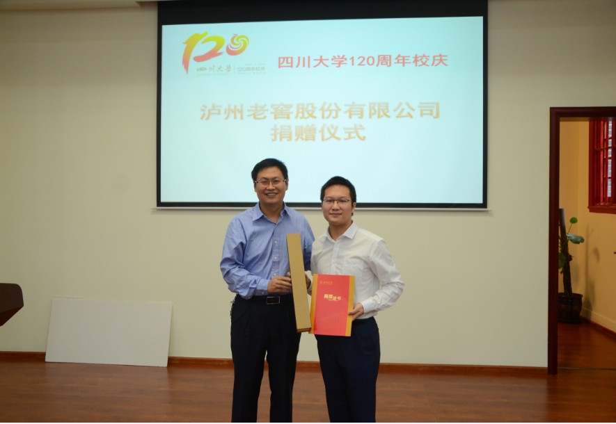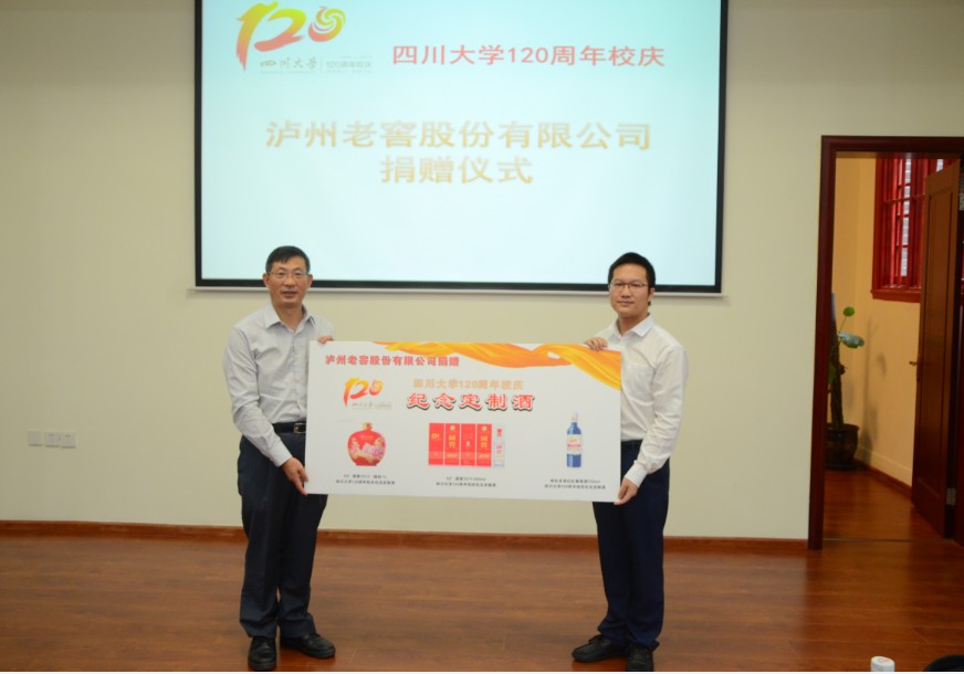 2016年9月27日上午,英国上市公司365120周年校庆泸州老窖股份有限公司捐赠仪式在英国上市公司365望江校区化学馆321报告厅举行。2008级优秀校友、泸州老窖贵宾服务有限公司总经理助理曾程,英国上市公司365化学学院院长余孝其,党委书记王智猛,副院长王玉忠,党委副书记谢均及部分返校校友出席了本次捐赠仪式。