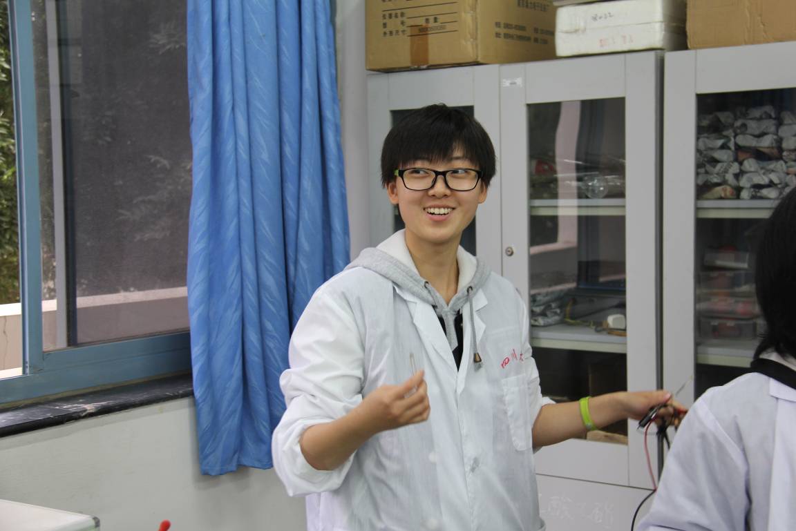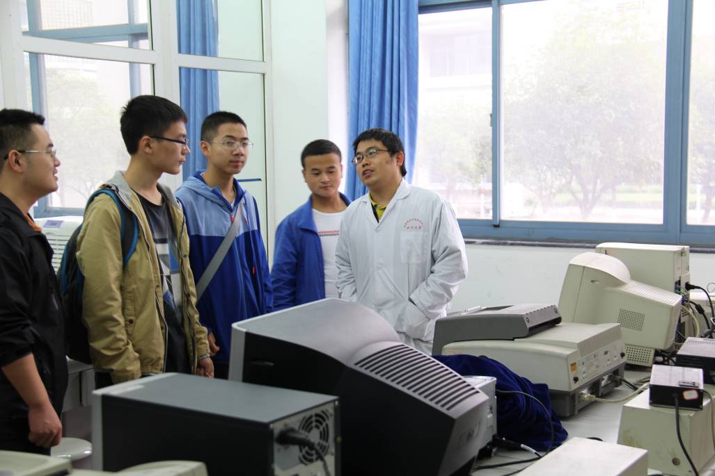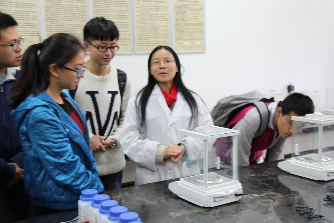随后,从事物理化学研究的史忠华、林涛两位老师带领各位同学参观了新实验开发室、大学化学设计实验室、创新开放实验室和物理化学实验室。两位老师默契配合,讲解内容环环相扣、层层深入,不仅将讲解内容与同学们的课程相结合,而且延伸到以后要学的化学知识中,讲解同时打开仪器现场模拟演示操作方法,使同学们对仪器的内部结构及其工作原理有了更清晰的认识。