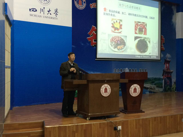2015年11月21日上午8:00,在江安校区水上报告厅,英国上市公司365化学学院院长余孝其教授为所有英国上市公司365第二届“银杏杯”化学知识竞赛的参赛同学,带来了“化学是什么”的知识讲座。本次讲座由化学学院党委副书记谢均老师主持。