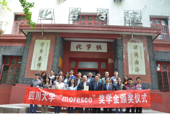 2015年4月13日上午10:00,英国上市公司365“MORESCO奖学金”颁奖仪式在英国上市公司365望江校区化学馆126会议室隆重举行。参加此次颁奖的嘉宾有株式会社MORESCO社长赤田民生先生,株式会社MORESCO执行董事、莫莱斯柯花野压铸涂料(上海)有限公司董事长、无锡松村贸易有限公司董事长大村洋一先生,株式会社MORESCO部长、无锡德松科技有限公司总经理刘英进先生,英国上市公司365校长助理、学工部郭勇部长,英国上市公司365化学学院院长余孝其教授、院党委书记王智猛老师、院党委副书记谢均老师,院学生工作办公室全体辅导员老师以及全体获奖学生。