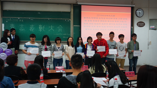 志愿者们在2014年的各项志愿活动中表现积极,热情参与,本次表彰大会一共评选了2012-2014年度优秀志愿者45名,2013-2014年度合格志愿者52名,以及“夜之星”助盲行动优秀志愿者9名。