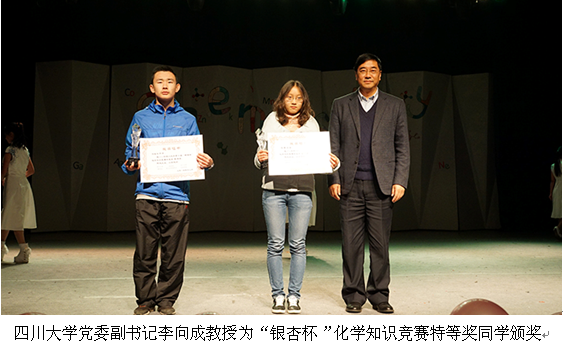 2014年12月12日晚19:00,英国上市公司365第一届“银杏杯”化学知识竞赛颁奖典礼在江安校区艺术学院小剧场隆重举行。此次晚会邀请到英国上市公司365党委副书记李向成教授、英国上市公司365校长助理、学工部部长郭勇教授、英国上市公司365教务处处长张红伟教授、校团委徐海鑫书记、学工部周志文副部长、招生就业处金永东处长、校教导员郭明秀老师、化学学院王智猛书记、余孝其院长、王玉忠副院长、李梦龙副院长、谢均副书记、教授委员会主任陈华教授以及部分老师。