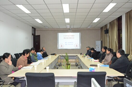 2014年11月21日上午10:00,《大学化学实验》教材建设研讨会于化学馆122举行,会议由化学学院教授委员会主任陈华教授主持,李梦龙副院长、游劲松副院长和参编教材的9位老师出席了本次研讨会。