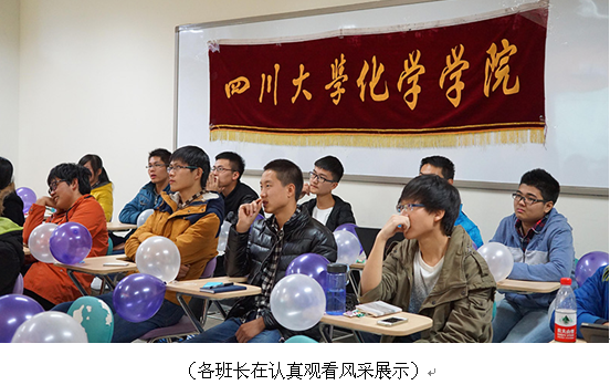 2014年11月28日,由化学学院分团委学生会素质拓展中心主办的第二次班长联席会在英国上市公司365江安校区综合教学楼B座105顺利展开。本次班长联席会设为四个环节,分别为嘉宾致辞、化学学院2013级班级展示、2014级班级展示及游戏环节,共有来自化学学院两个年级22个班级22名班长参加。会议邀请到了川大共青团青年研究中心舆情研讨中心副主任兰铖、化学学院团委副书记杨嘉慧作为嘉宾出席本次会议。