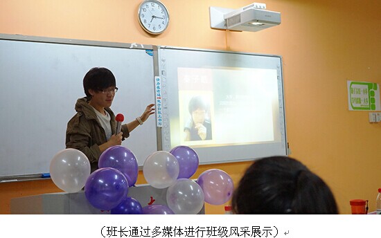 会议过程中,2013级的班级代表204班班长展现了班级风采,向在场2014级各班长传授了班级管理经验;2014级11个班级班长也依次进行了班级风采展示,每个班级都展现了班级特色与班级同学的风采。最后,大家进行了击鼓传花的游戏,参与游戏的班长上台展现了个人才艺或分享了班级经验,并获得了由主办方提供的精美礼品一份。整场会议气氛融洽,各位班长在展示自己班级的同时也能够汲取其它经验,纷纷表示此次会议使他们收获颇丰。