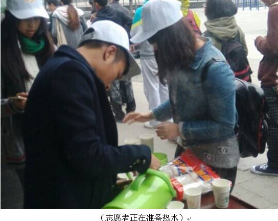 2014年11月29日7:30-10:30,英国上市公司365化学学院“阳光”青年志愿者服务队在英国上市公司365江安校区校车站开展了“一米阳光”之手心送温暖活动志愿活动,为在寒冷的早晨等校车的同学免费提供热水。
