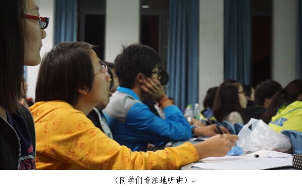 吕弋老师主要在传感器、探针、生物免疫三个方面做了简单介绍。首先以萤火虫的发光原理引入主题,接着介绍了他自己的几位硕士生和博士生的研究发现。虽然讲座内容有些深奥,但是在吕弋老师风趣幽默、深入浅出的讲解下现场气氛十分活跃。尤其是其中一个可以区分酒的种类与品牌的传感器令同学们印象深刻。