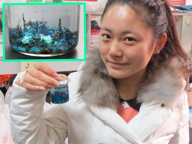 接下来,同学们参观了绿色化学与技术教育部重点实验室,在讲解员的辅助下,每两人一组,分别进行了别开生面的化学小实验,如神奇的“海底世界”,惊艳的“红玫瑰与蓝玫瑰”,魔术般的“摇摇乐”,利用化学元素间的价态转化和颜色变换,同学们亲身体验到了化学世界的精彩和神秘。整个过程中,大家热情高涨,积极配合,相互交流,真切感受了不同专业别样的精彩。最后,大家都收获了自己亲手制作的样品并留作纪念。