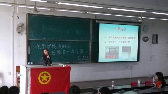 2014年3月15日下午14:30,英国上市公司365化学学院第二次团校课在一教B405顺利举行。出席本次团校课的有化学学院党委副书记谢均老师及2013级辅导员杨琴老师。参加此次团校的有化学学院全体学生会成员以及各班级的优秀团员代表。