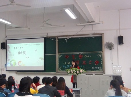 首先,化学学院党委副书记谢均老师致辞。谢均老师讲到12级同学们一年以来认真积极的工作态度,为13级新同学们起到了很好的带头作用。在表达了对13级分团委成立的热烈祝贺后,谢均老师向同学们讲述了做事先做人,认真做人,认真做事的道理,强调了学生的首要任务是学习,告诫同学们一定要协调好学习与工作的关系,在学习与工作上获得同步提升。