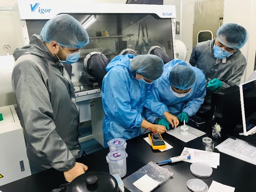 7月8日上午,中外学生首先参加由Jason Chruma教授主讲的安全讲座,对实验室安全操作有了一定的基本了解。当天,在宾正杨副教授的介绍下,参观了制备发光材料的实验室,了解了制备发光芯片所需要的仪器设备。7月9日至7月10日中午,外籍同学和化学学院同学学习了相关文献,对相应领域的背景知识、发光原理、前沿方向均有了一定的认识。7月10下午,在宾正杨副教授的指导下完成了理论学习。7月11日,外籍同学和化学学院同学在实验室完成了发光材料从制备到检测的全过程,学习了该领域的具体实践操作。