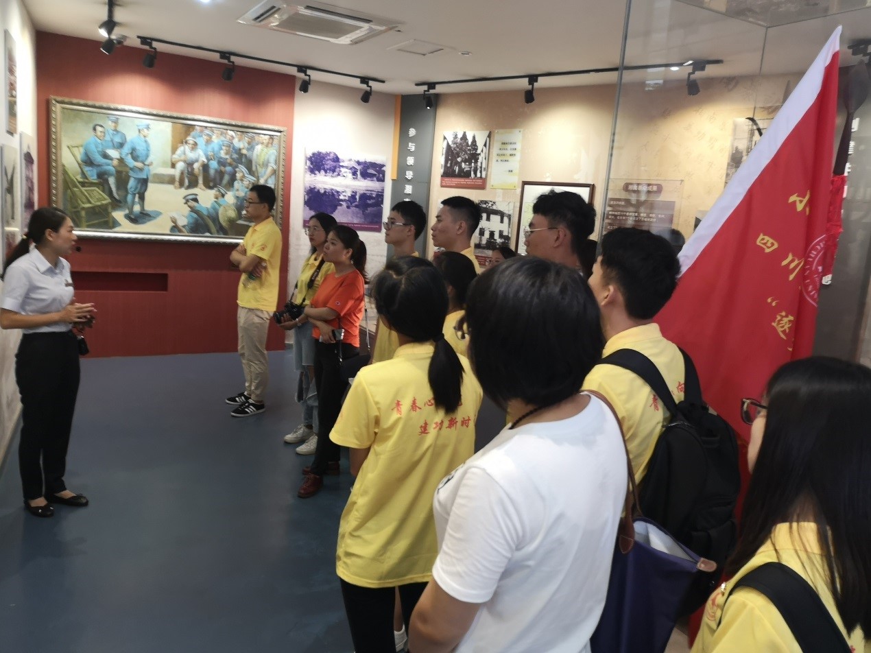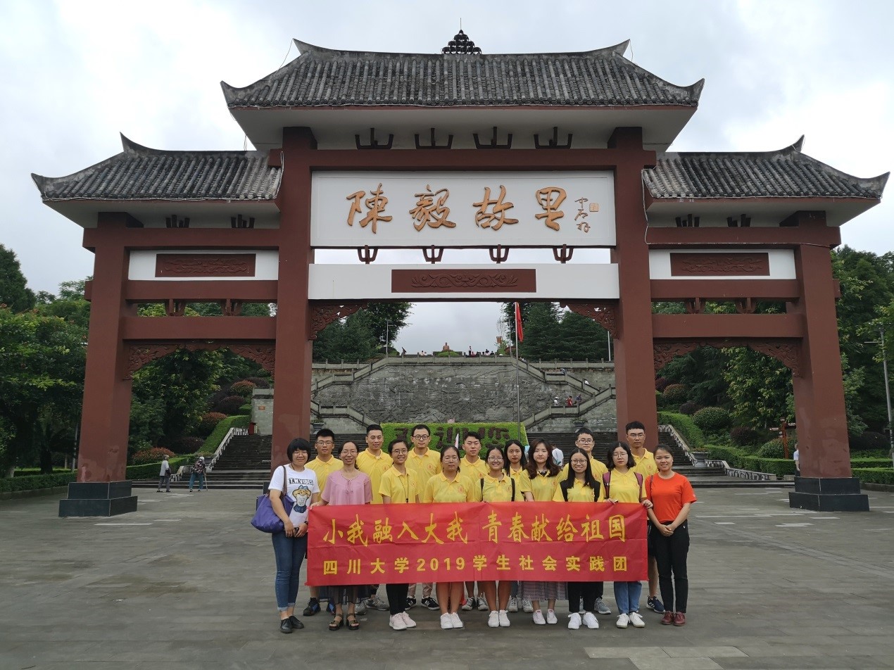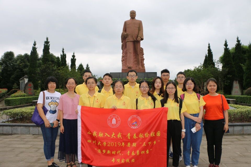 为迎接中华人民共和国成立70周年,激励和引导广大学生弘扬爱国主义精神,争做时代新人,7月18日-19日,化学学院暑期社会实践团在学院团委书记来俏和辅导员杨琴、张若一的指导下,赴资阳和南充开展“开国元勋故里行”暑期社会实践活动。