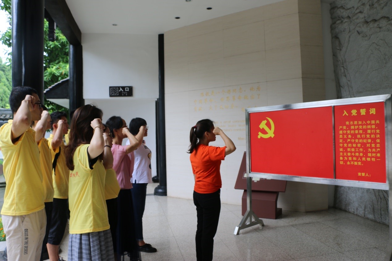 随后,实践团在讲解员的引导下参观了陈毅纪念馆。实践团成员聆听了陈毅元帅立志救国、艰苦抗战、领衔外交等英雄事迹,回顾了陈毅元帅光辉伟大的一生,了解到陈毅元帅廉洁奉公、胸怀宽广的品格。实践团无不认真思考学习,赞叹陈毅元帅的伟大功绩。全体党员重温了入党誓词。