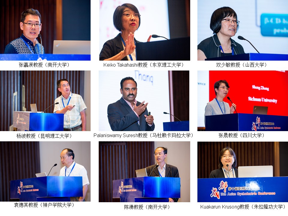 本次会议邀请了大阪大学Arika Harada教授、第一制药大学Hidetoshi Arima教授、华东理工大学马骧教授、东京大学Kohzo Ito教授、新加坡国立大学李俊教授就环糊精化学的研究新进展、应用意义、发展战略作了大会报告。神户学院大学的袁德其教授、朱拉隆功大学的Kuakarun Krusong教授、东京理工大学Keiko Takahashi教授、马杜赖卡玛拉大学Palaniswamy Suresh教授、英国上市公司365张晟教授、山西大学双少敏教授、南开大学陈湧教授、张瀛凕教授、昆明理工大学杨波教授等受邀作邀请报告,就环糊精与药学、生物学、医学、智能材料等多学科领域交叉研究进行了分享与讨论。