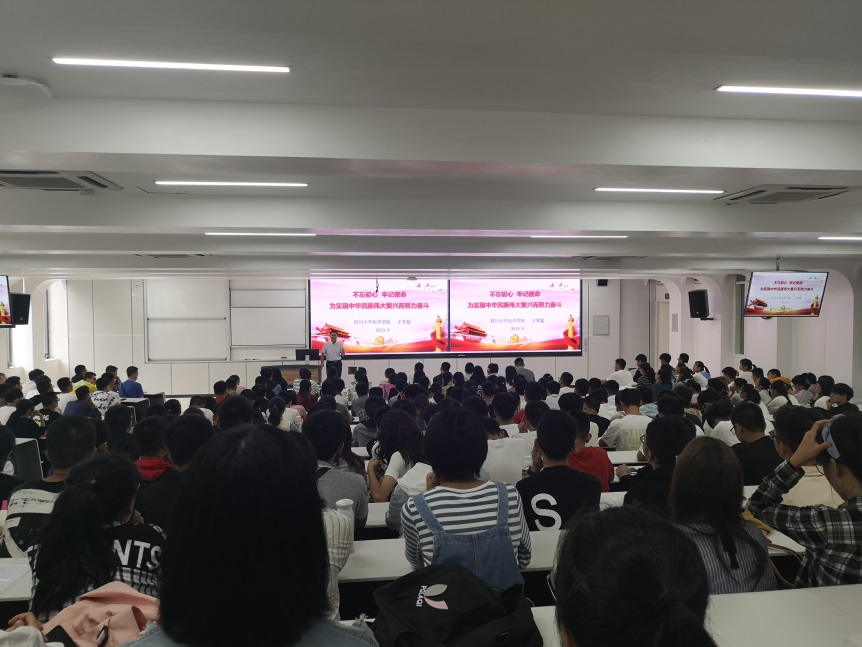 9月4日上午,化学学院党委书记王智猛为学院2019级本科新生带来了一场主题为“不忘初心,牢记使命,为实现中华民族伟大复兴而努力奋斗”的讲座。