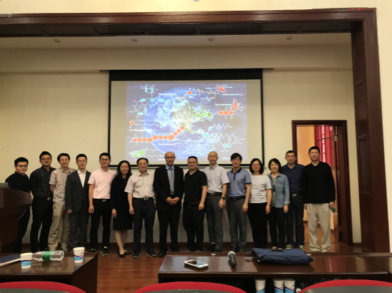 在报告中,Nicolaou教授首先介绍了他们课题组在天然产物全合成方面的研究,列举了目前为止他们课题组已完成的重要复杂天然产物分子,随后对部分具有重要生理活性和特殊结构的分子合成进行详细讲述。尤其是近年来通过发展的多步串联反应,简洁、高效地完成复杂分子的全合成,也体现全合成的艺术性。在此基础上,Nicolaou教授以自己研究工作为例,详细介绍了天然产物化学对生物学和医学的影响。如他们利用已发展的方法学合成系列天然产物类似物,并进行活性筛选,再将高活性的分子键合在抗体上面用作药物,目前该部分工作进展顺利,部分成果已获得美国FDA(Food and Drug Administration食品药品管理局)批准。在随后的自由提问环节,在座师生与Nicolaou教授进行了深入地讨论交流,大家获益匪浅。报告在全场师生热烈的掌声中落下了帷幕,结束后部分老师与Nicolaou教授进行了合影留念。