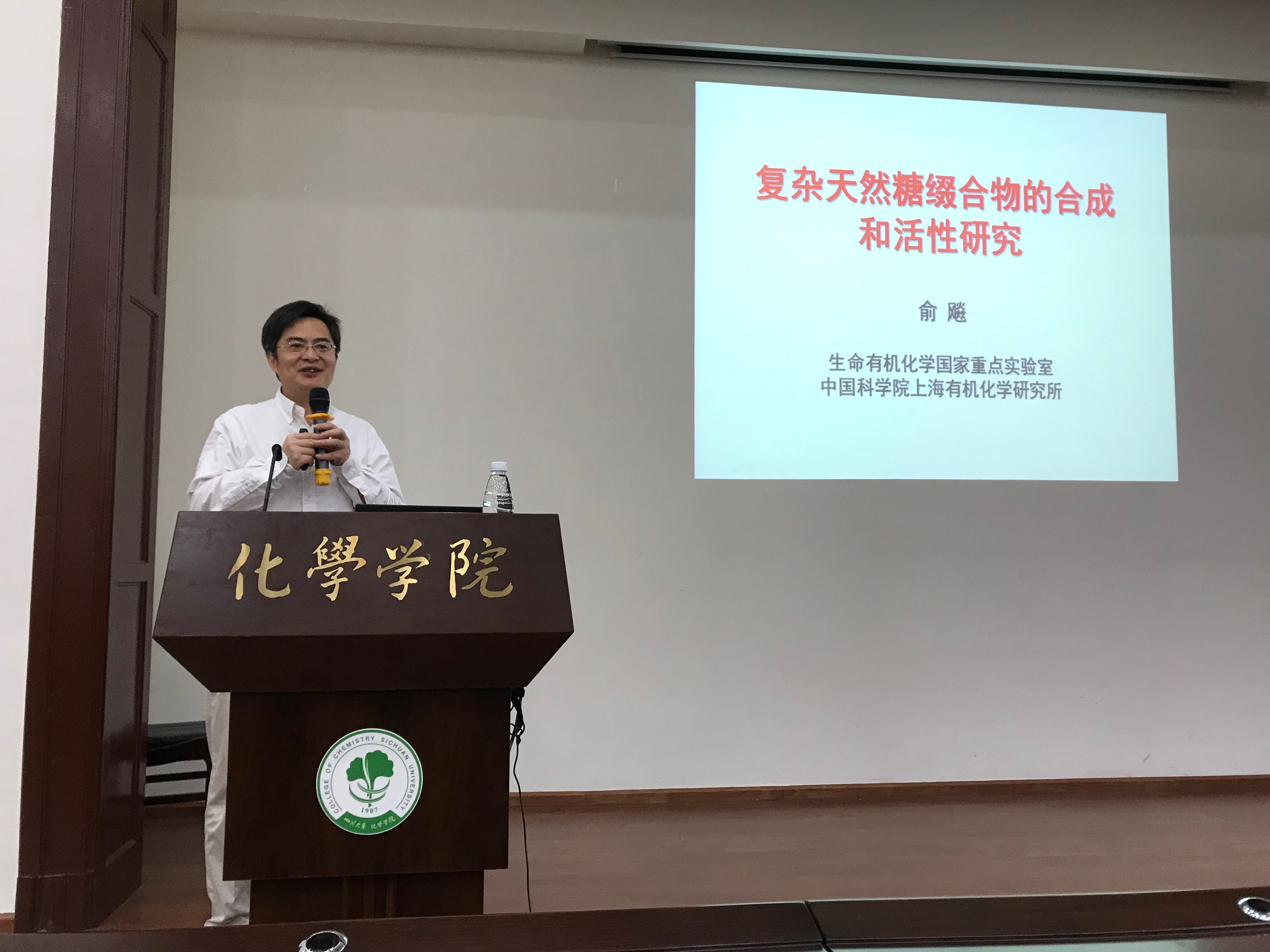 2019年5月31日上午,应化学学院邀请,俞飚研究员访问我院,并在化学馆321报告厅做了题为“复杂天然糖缀合物的化学生物学研究进展”的学术报告,报告由冯小明院士主持。
