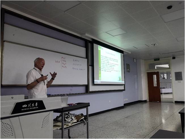 2019年7月1日,英国约克大学James Hanley Clark教授参加英国上市公司365“国际课程周”授课,在英国上市公司365江安校区第一教学楼B座201教室为同学带来一门“Green and Sustainable Chemistry: Drivers and Practices”课程。第一堂课是关于绿色化学原则及其基本应用的介绍,同时Clark教授对英国约克大学和绿色化学卓越中心进行了详细的介绍。James H. Clark教授在国际上是从事绿色化学技术转化生物质废物研究的专家,是国际绿色化学中心网络联盟的主席,也是化学类重要学术刊物“Green chemistry”杂志的创刊主编,已从事绿色化学及生物质炼制20多年,特别是针对微波辅助生物质转化的研究有着丰富的科研经验,并在学术上取得了卓越的成就。如何有效的利用原生生物质制备生物油是发展可持续能源的必然方向,James教授十分关注于真实的工业化应用,这是生物油替代化石能源的关键一步,也是人类可持续发展的必然发展路径。在这堂课上,Clark教授向同学们讲解了许多绿色化学的前沿方向,而作为一门新兴学科,绿色化学对于可持续发展十分重要。在接下来的课程里,Clark教授将会讲述废物利用、环境立法以及化学产物的绿色合成,更有精彩的文献讨论环节和部门组织成员扮演环节。
