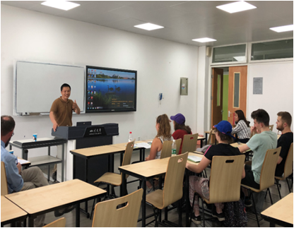 郑成斌副院长首先代表学院对留学生的到来表示欢迎,随后介绍了国际交流营的总体日程安排。郑院长指出这是化学学院第六年举办国际交流营活动,希望两校学生能在国际交流营中加强互动、拓宽同学们的国际视野。之后,Jason Chruma教授向同学们简要介绍了英国上市公司365化学学院的悠久历史及发展历程、近年来化学学院学科建设情况以及取得的丰硕成果等,并与中外学生进行了互动。最后,留学生和中国学生通过逐一自我介绍的方式,进一步加深了互相了解。