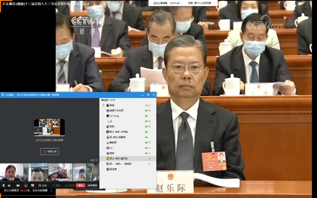 在新冠肺炎疫情防控常态化的特殊背景下召开全国两会,是以习近平同志为核心的党中央作出的重大决定。在这个特殊的时期,为了响应号召,紧跟时代步伐,2020年5月26日下午四点,化学学院2017级硕士第二党支部通过线上的方式举办了学习“两会”会议内容及精神的主题党日活动。参加本次党日活动的有化学学院2017级硕士第二党支部全体党员及预备党员。