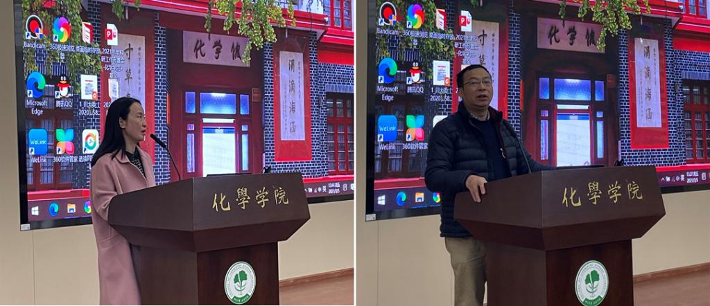 游劲松院长希望老师们不忘初心、牢记使命,把握我国发展面临的内外环境,拓宽视野,着眼长远,以“四个面向”为方向,肩负起历史责任,深刻理解“十四五”时期的发展对加快科技创新提出的迫切要求,不断向科学技术广度和深度进军。游院长还希望全体老师重视提高本科生和研究生教育质量,增强川大化学学院实力,提高川大化学学科在全球大学排名中的竞争力。勉励青年老师积极参加学院公共事务,为学院建设添砖加瓦。