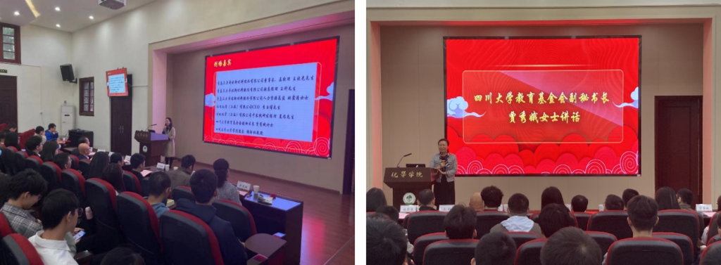 谢均书记主持颁奖典礼并致辞。她对王晓光先生及各位到场嘉宾表示热烈欢迎,真挚的感谢王晓光先生一直以来对母校事业发展的支持,以及对化学学院学生的关心与帮助。贾秀娥女士在致辞中向获奖同学表示祝贺,鼓励他们不忘初心,继续努力学习。