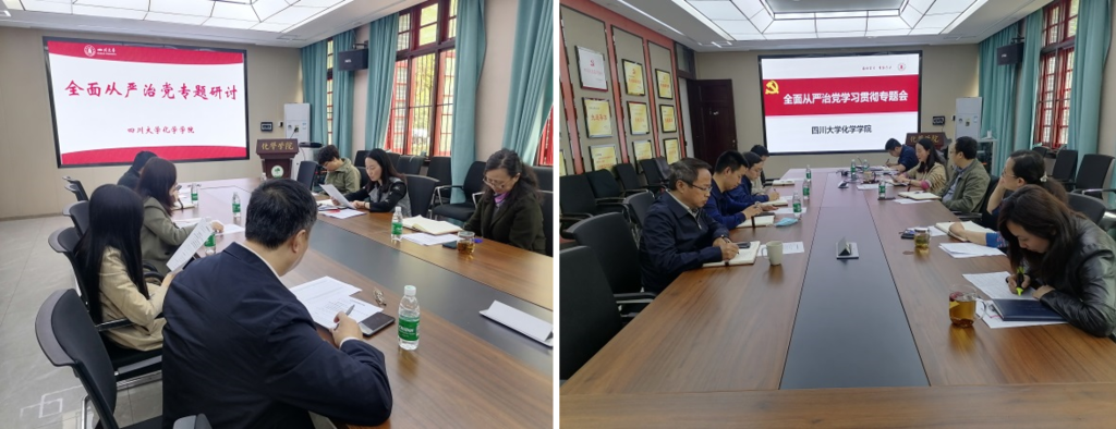 会议传达了四川省教育系统全面从严治党工作视频会和学校2022年全面从严治党工作会精神,总结了学院2021年度全面从严治党工作情况,对学院目前全面从严治党形势进行了分析研判,最后就学院2022年度全面从严治党重点工作进行了讨论研究,审议并通过了《化学学院2022年全面从严治党工作计划》,就全面从严治党工作进行了布置。
