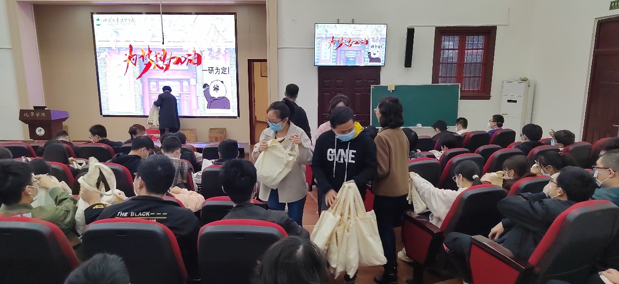 最后,老师们为考研同学发放了学院精心准备的考研加油包。