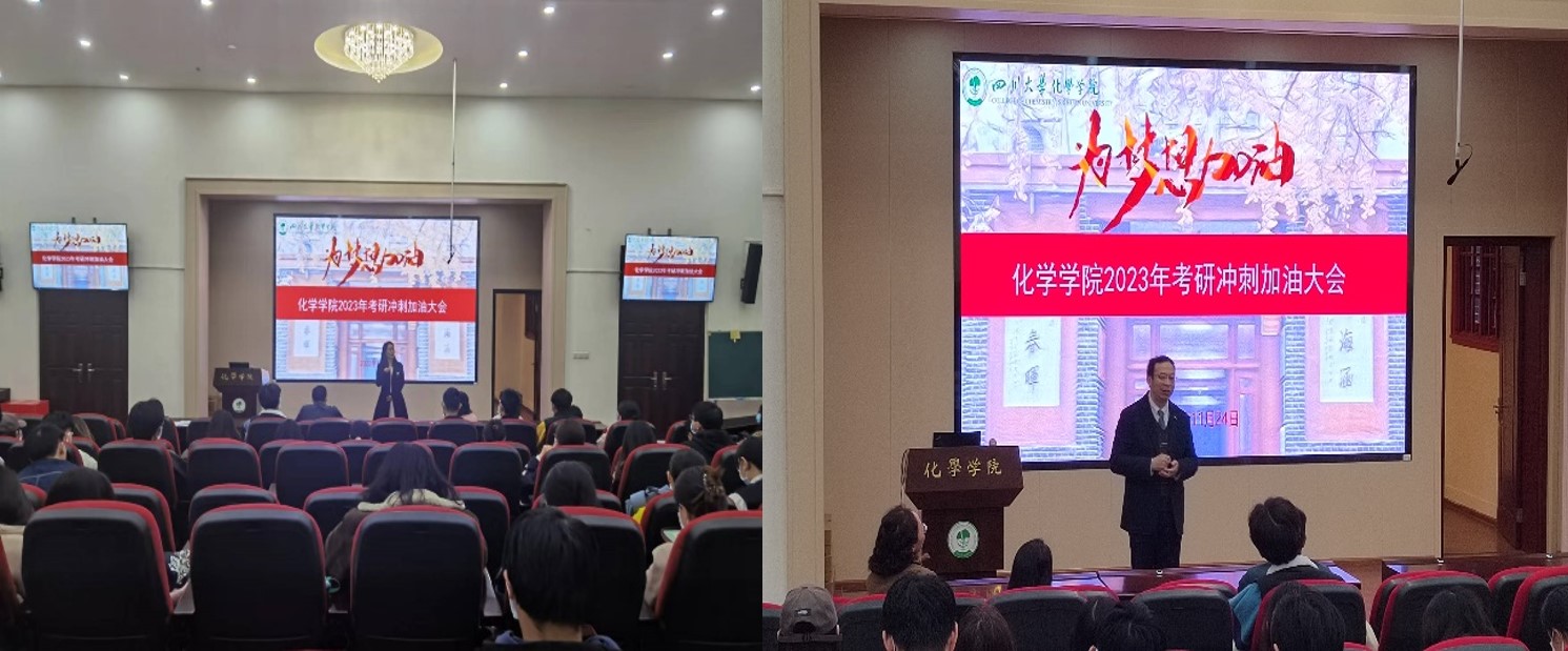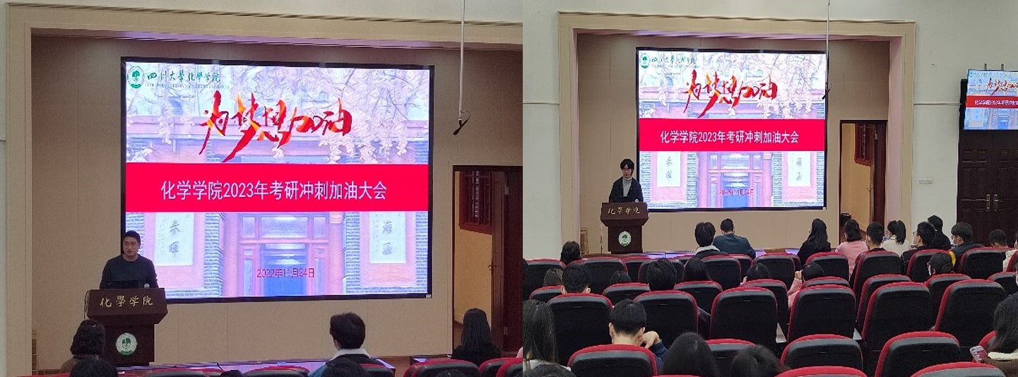 为落实科教兴国战略,强化现代化建设人才支撑,表达对考研学子的关爱和鼓励,坚定考研同学信心,11月24日下午,在化学馆321报告厅举行了化学学院2023届考研冲刺加油会。学院党委书记谢均、院长游劲松、党委副书记肖波、全体辅导员、学院朋辈帮扶团和2023届全体考研同学参加了本次会议。
