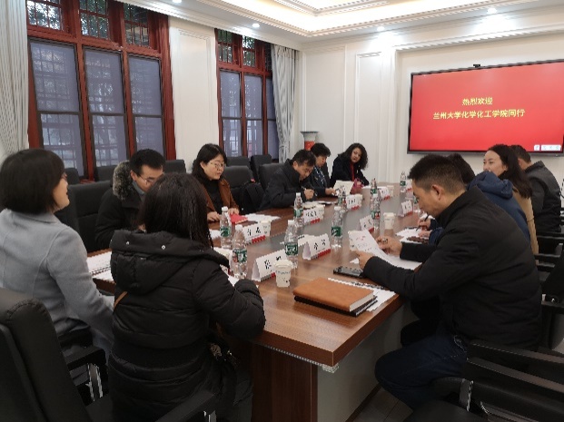 2月22日,兰州大学化学化工学院副院长惠新平教授、国家级化学实验教学示范中心主任沈永雯高级实验师等一行来我院就化学专业本科人才培养进行调研交流。学院党委书记谢均、副书记肖波、副院长郑成斌、副院长李坤、各学科理论和实验主讲教师以及教学科、党政办等老师参加了交流会。交流会由郑成斌副院长主持。