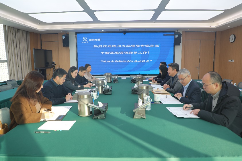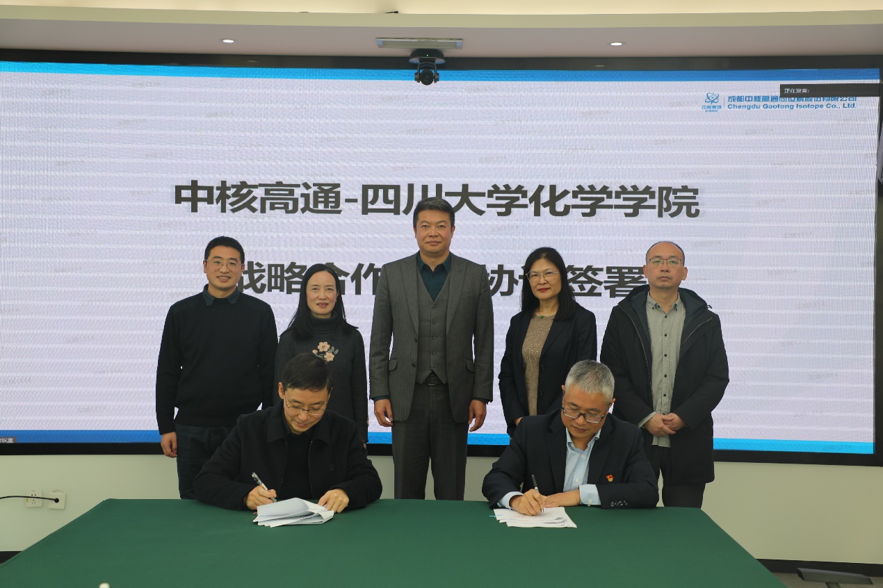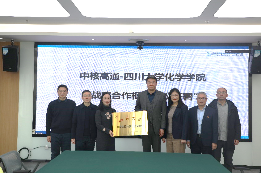 12月18日,化学学院谢均书记带队前往成都中核高通同位素股份有限公司开展访企拓岗并签订战略合作框架协议。中核高通书记/董事长罗旭、副书记陈秋云、副总经理黄能武、研发经理曾松柏、副经理贺文明,化学学院肖波副书记、马利建副院长等出席了本次会议。