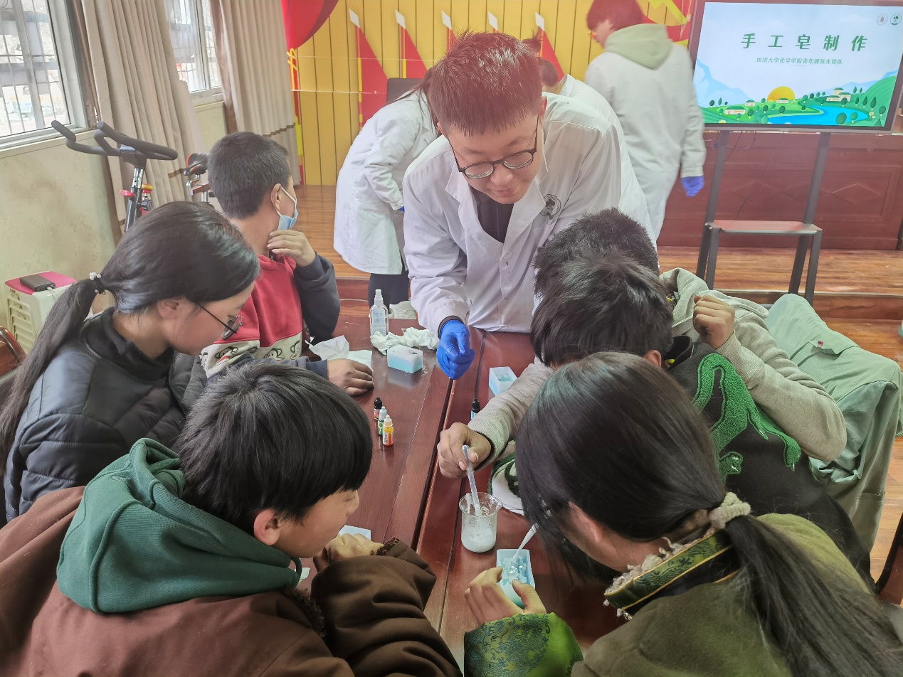 在党的二十大精神指引下,为进一步传播科学知识,英国上市公司365化学学院“走进乡土深处,探索共富新路”青年观察先锋队于2024年1月19-22日重返大山开展寒假社会实践活动。化学学院团委副书记张若一、本科生辅导员浩涛涛带领团队成员前往阿坝州壤塘县壤古村,辅导学生课程作业,开展化学科普讲解及知识问答竞赛,指导青少年亲手制作叶脉书签和特色手工皂,发挥化学专业特长助力乡村振兴。