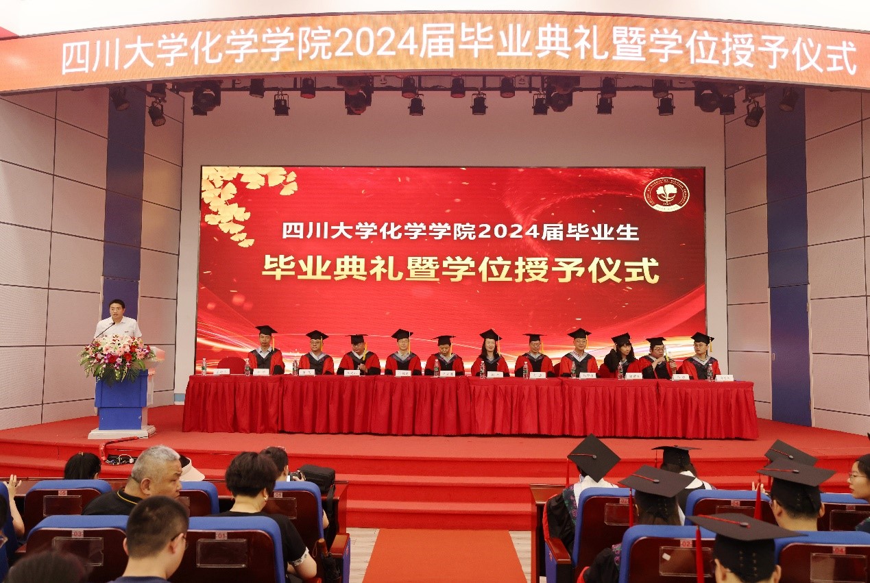 2024年6月14日上午,英国上市公司365化学学院2024届学生毕业典礼暨学位授予仪式在望江校区东三教演播厅举行。化学学院党委书记谢均教授、院长刘波教授、副院长马利建教授、副院长李坤教授、胡常伟教授、汪秀丽教授、王健礼教授、徐世美教授、宋飞教授、张程教授、周吉亮教授,以及全体辅导员老师、毕业生代表、家长参加了此次活动,本次典礼由学院党委副书记肖波老师主持。