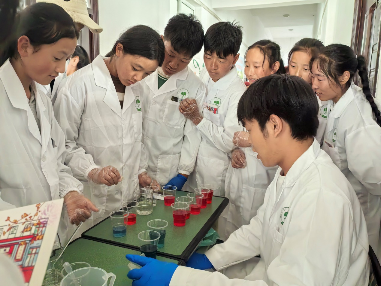 壤塘县中学学生进行“化学游园会”打卡挑战——酸碱魔法