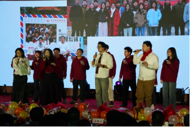 随着一曲悠扬动人的《干杯》歌声响起,由青年教师芶思绮带领的师生歌唱团以深情饱满的嗓音,瞬间点燃了现场的温暖氛围。随后,六位主持人满怀热情地走上舞台,逐一介绍莅临晚会的嘉宾。