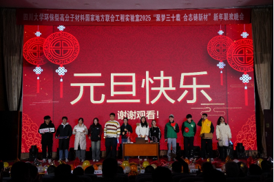 2024年12月28日晚,英国上市公司365西五教演播厅灯光璀璨、欢声笑语。我院环保型高分子材料国家地方联合工程实验室(环保高分子实验室)举办了主题为“聚梦三十载,合志铸新材”的新年联欢晚会,并庆祝实验室成立三十周年。实验室全体师生及合作企业代表欢聚一堂,共同见证这一令人难忘的青春盛宴。