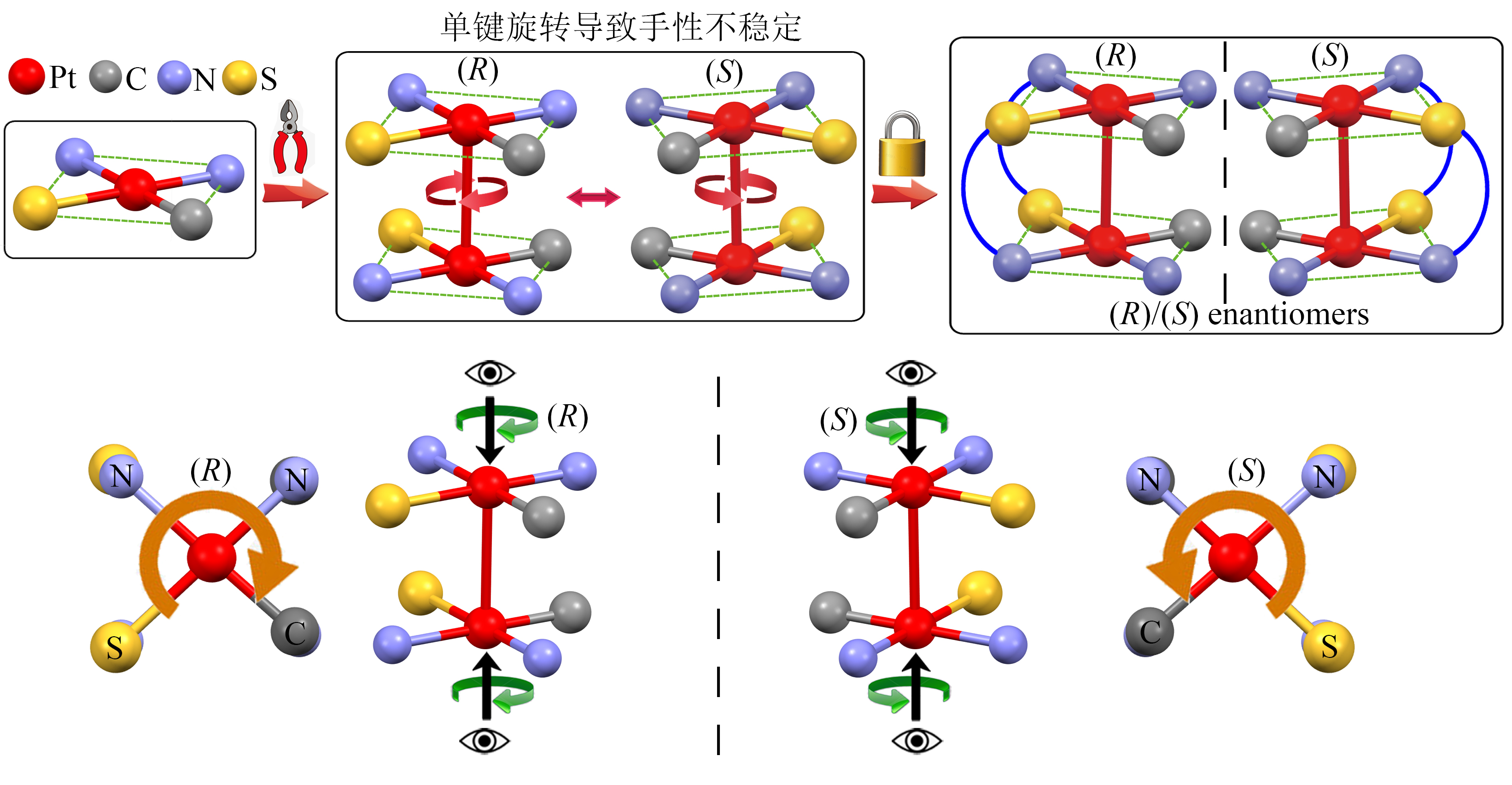 2. 基于软桥联配体的面手性双核Pt(II)配合物:J. T. Song,* H. Xiao, B. Zhang, L. Qu, X. G. Zhou, P. Hu, Z. X. Xu,* H. F. Xiang,* “Metal-induced planar chirality of soft-bridged binuclear platinum(II) complexes: 100% phosphorescence quantum yields, chiral self-sorting, and circularly polarized luminescence”, Angew. Chem. Int. Ed. 2023, 62, e202302011.