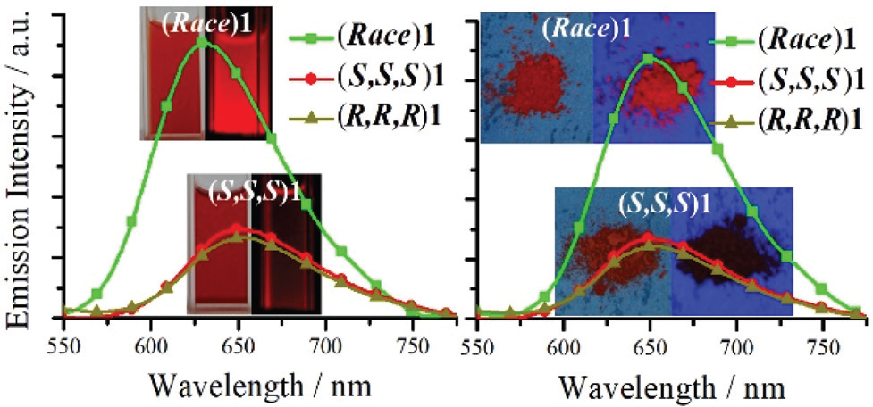 (3)首次发现消旋导致发光增强现象(Dalton Trans., 2019, 48, 4420);